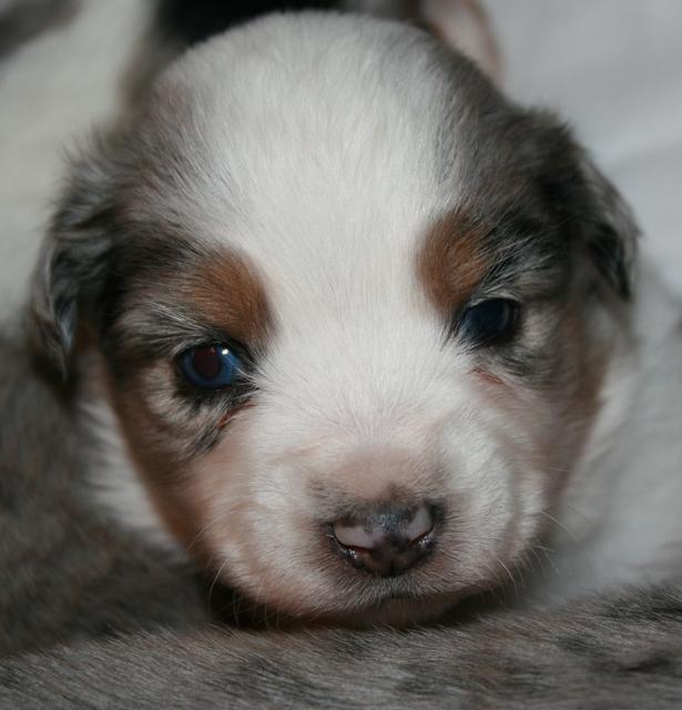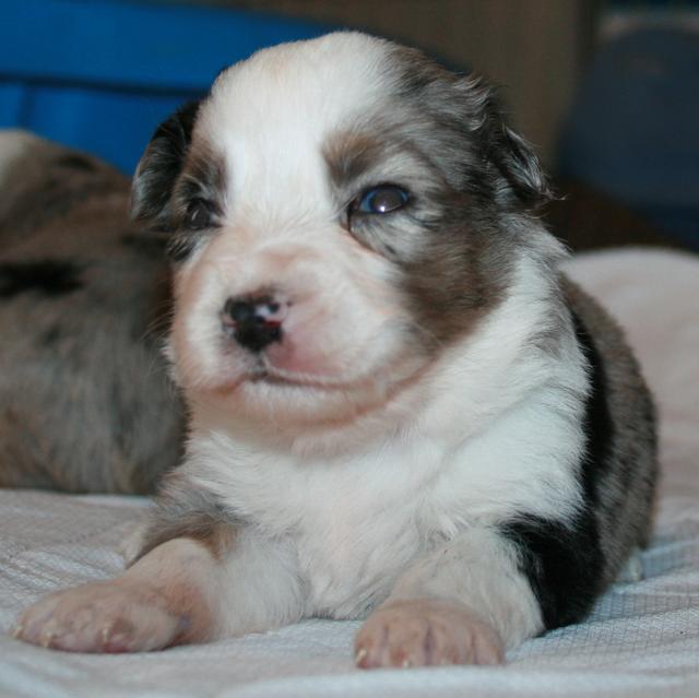 3 Blue Merle Girls, 2 Blue Merle Boys and 1 Black Tri Boy